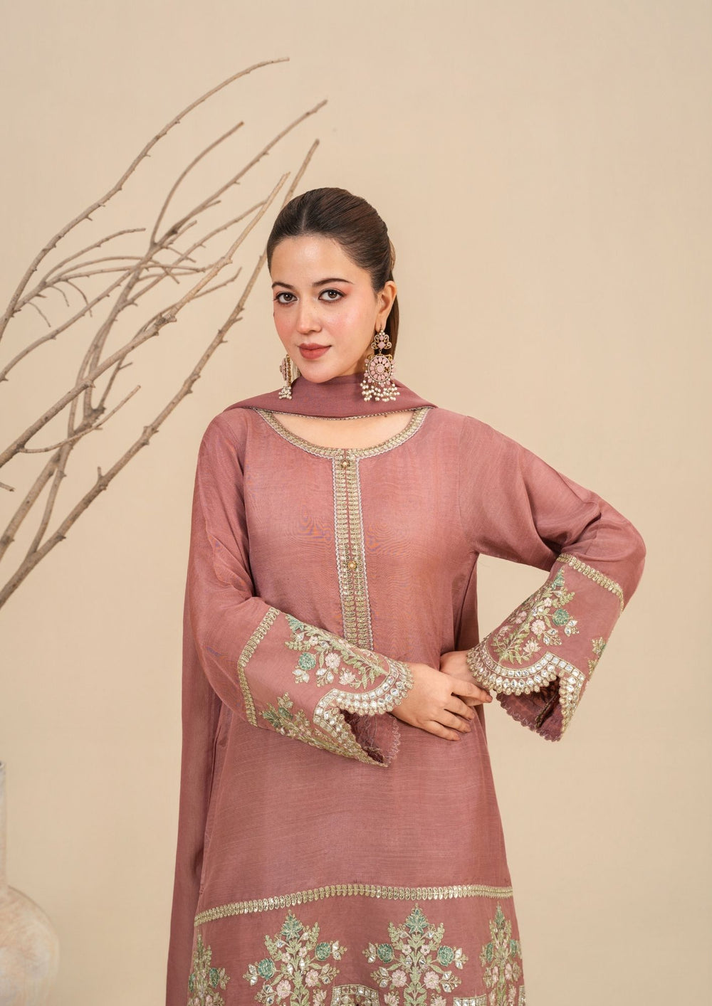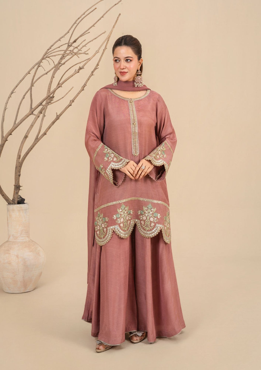 2Pc Embroidered Silk Karandi Golden Brown JUPITER-F25-0033