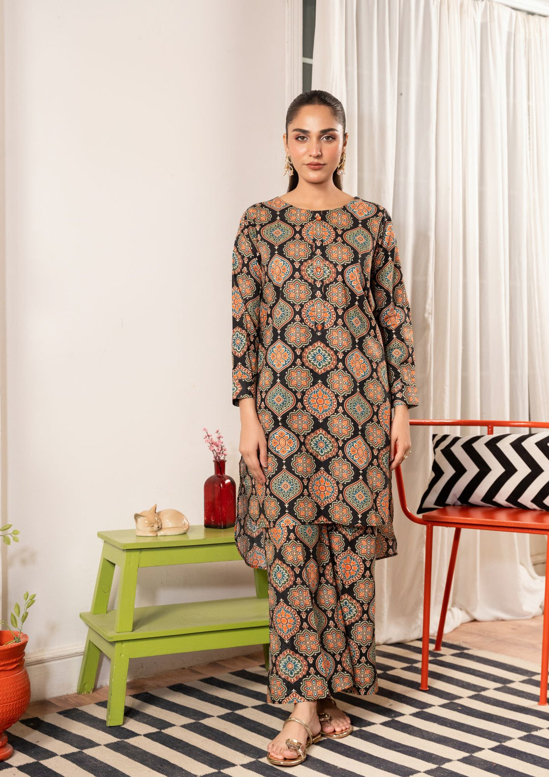 2PC Digital Print Swiss Silk Long Shirt with Trouser JUPITER-F25-0011