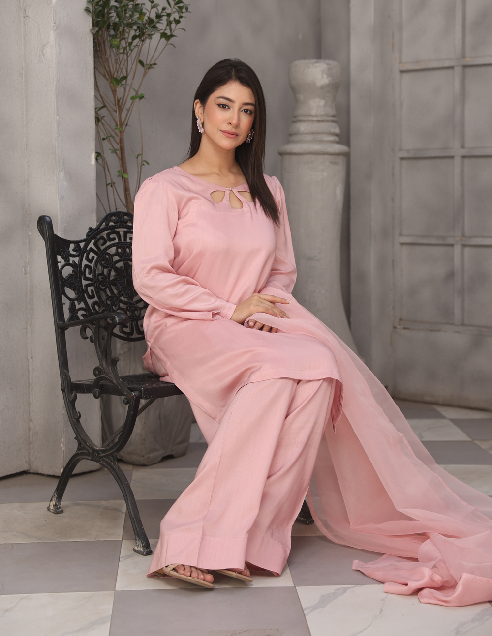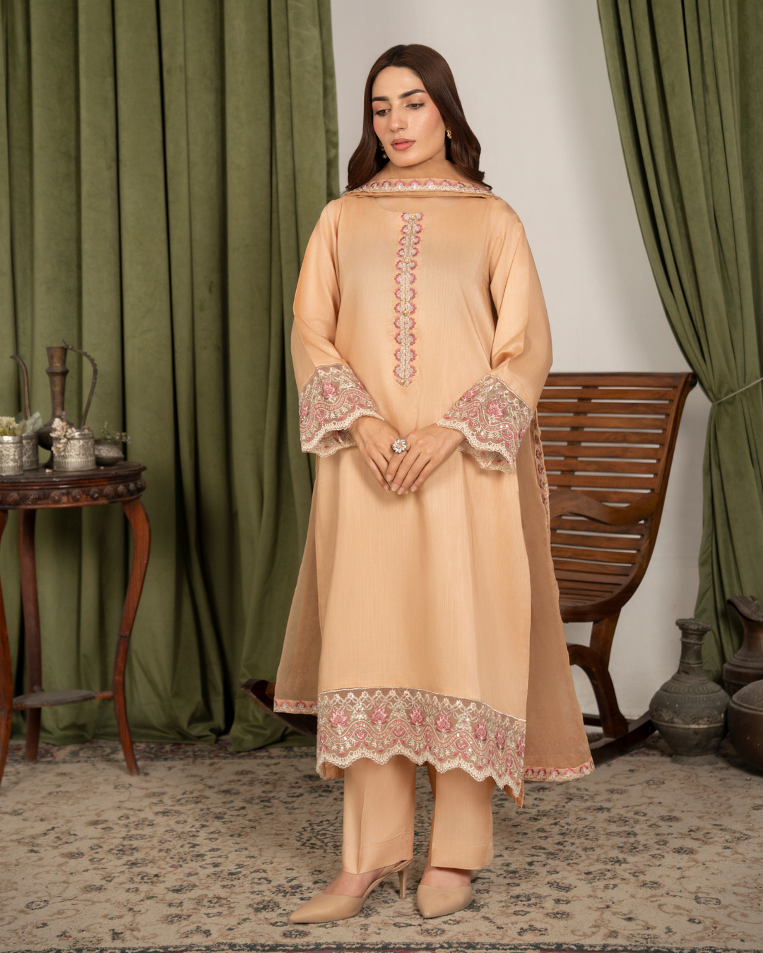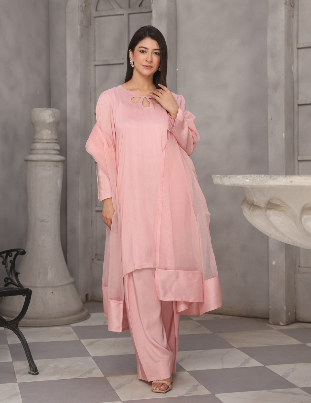 2PC Peach Noir Tie-Sleeve Georgette Set JUPITER-F25-0009