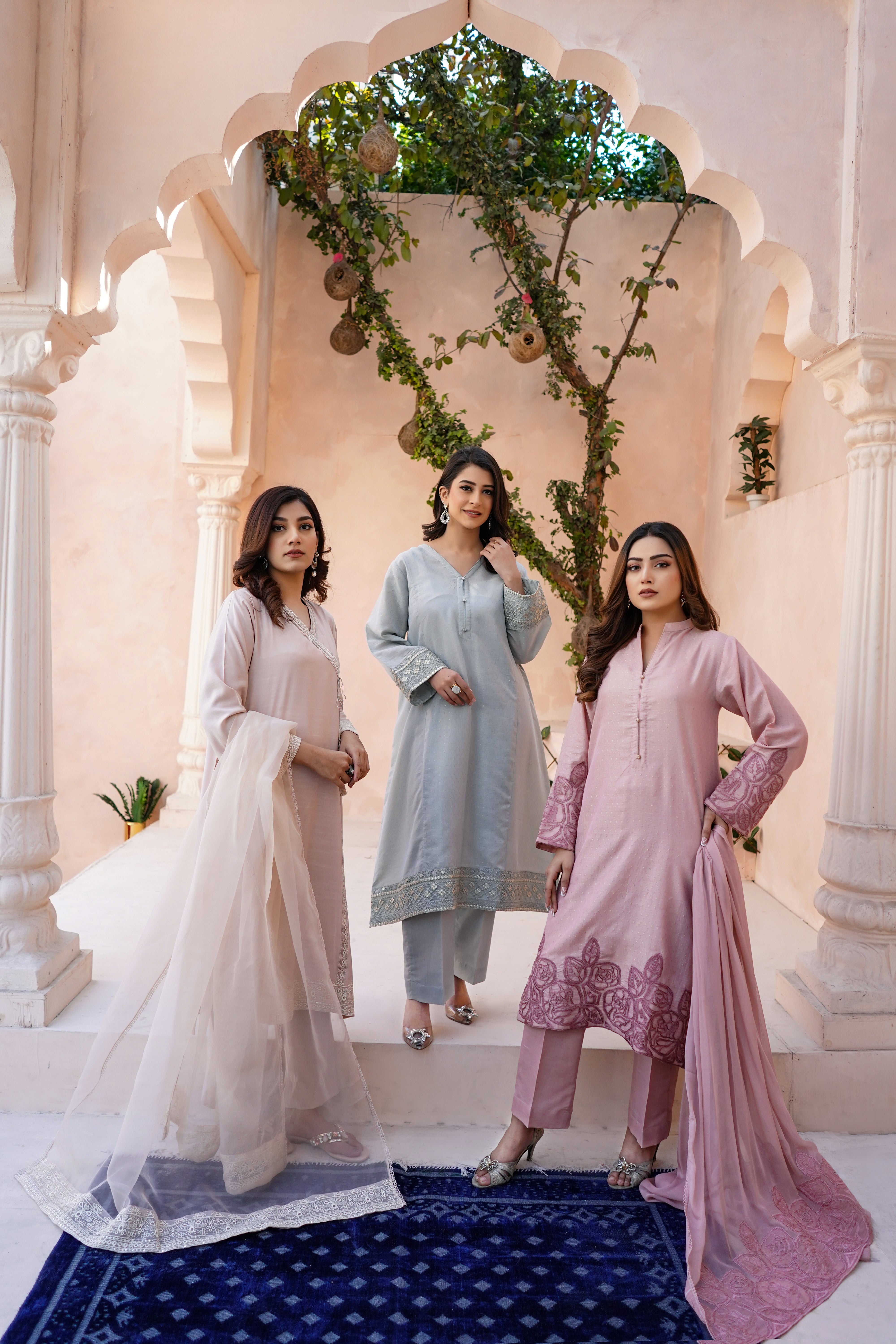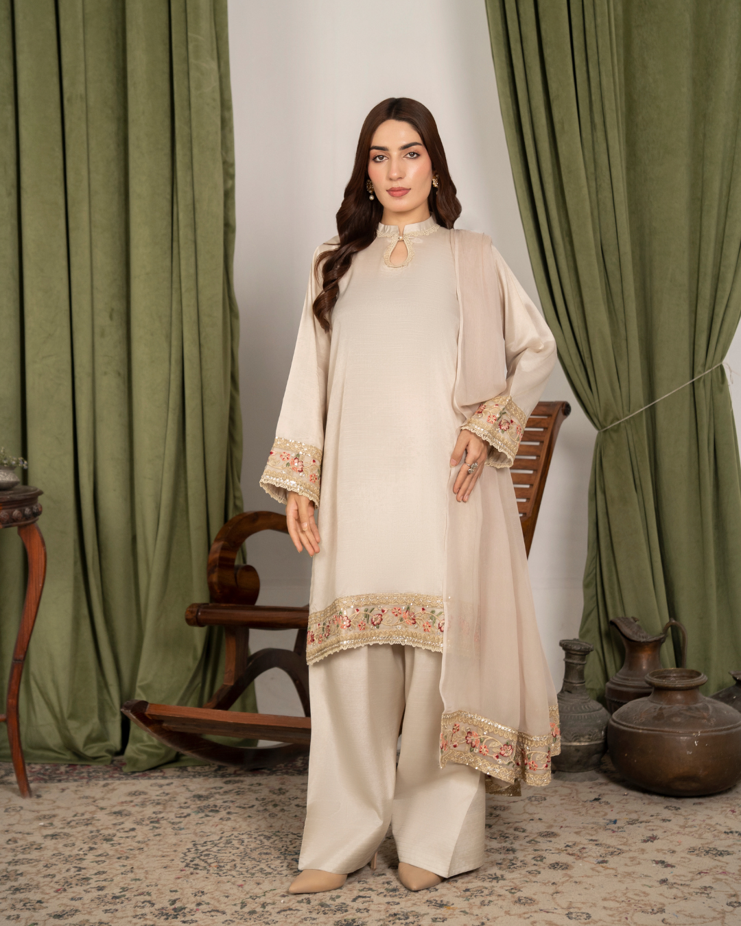 2Pc Ivory Bloom Swiss Silk Long Shirt with trouser JUPITER-F25-0012