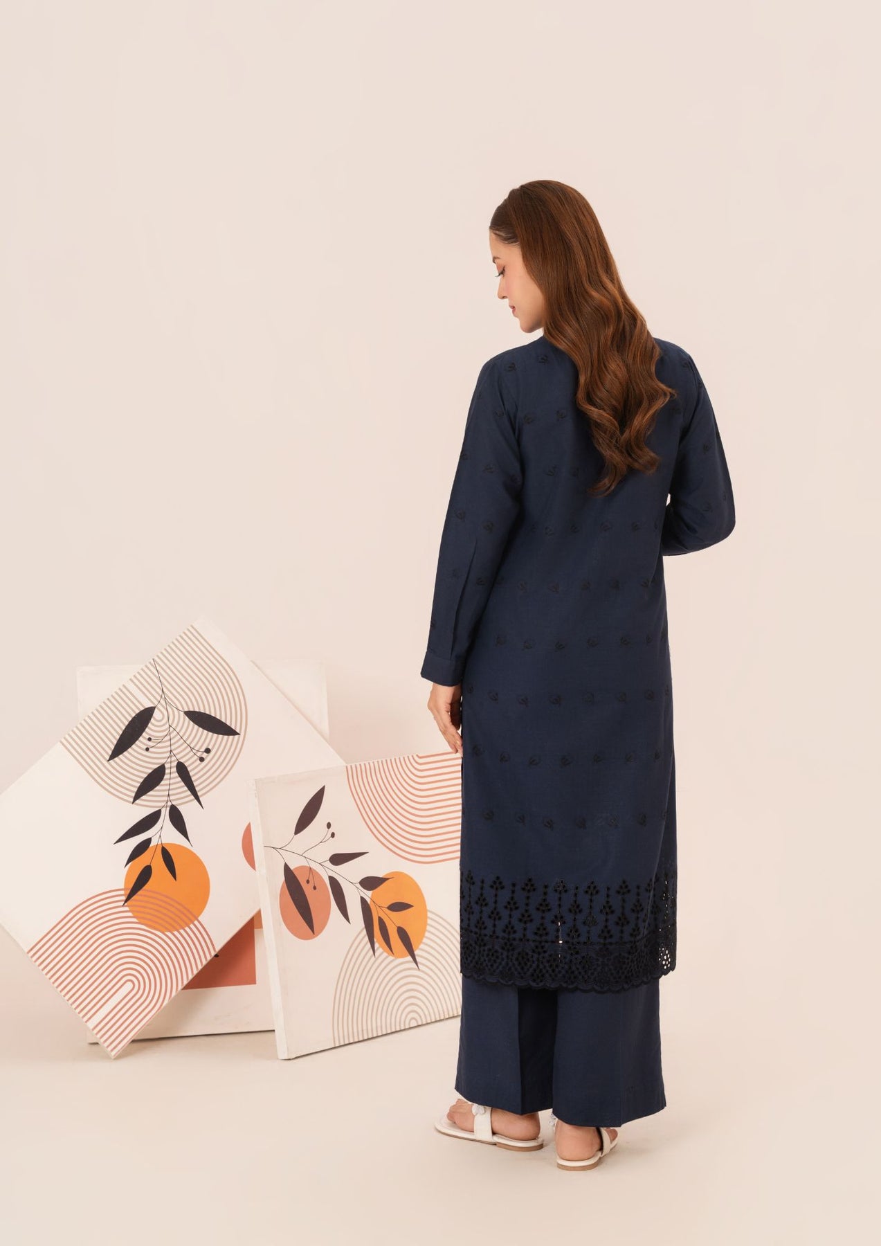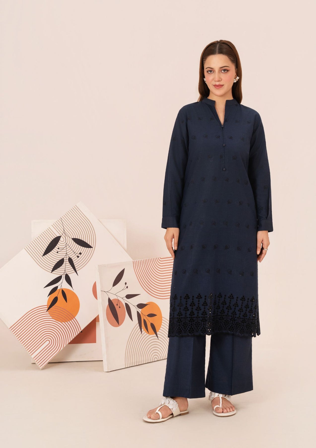 2pc Schiffli Embroidered Cambric Navy Set Rozana-W25-0028