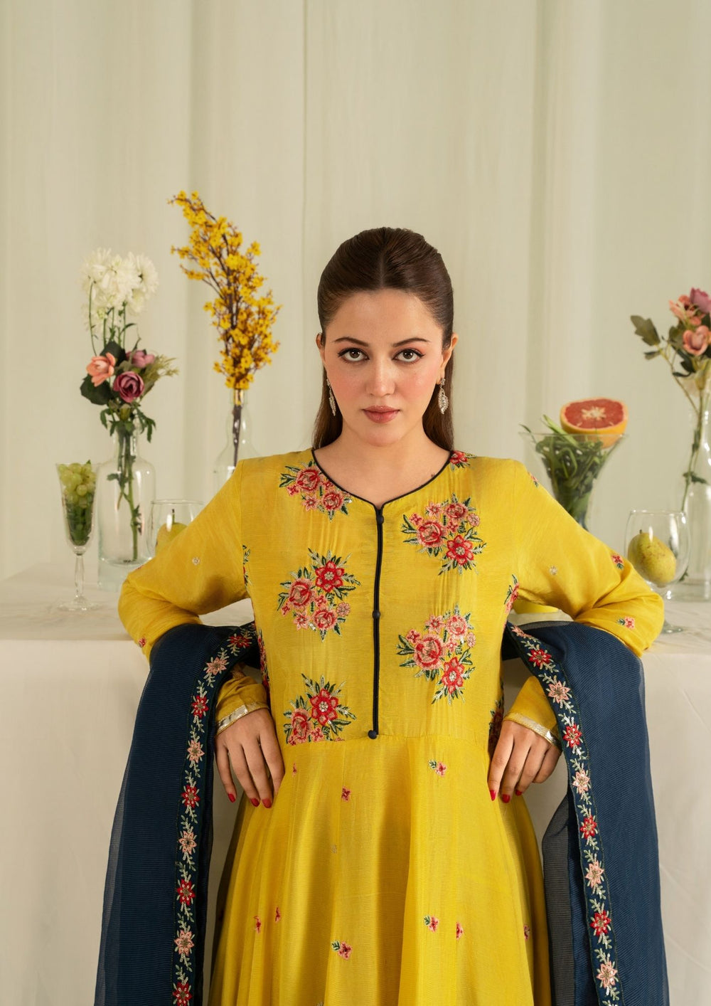 2Pc Embroidered Raw Silk with Net Dupatta Mustard Yellow | LUXE-L25-0006