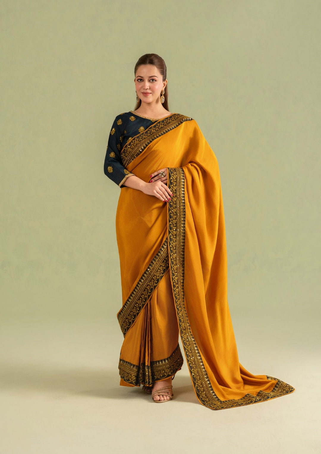 3Pc Super Silk Saree Mustard Gold | LUXE-L25-0007