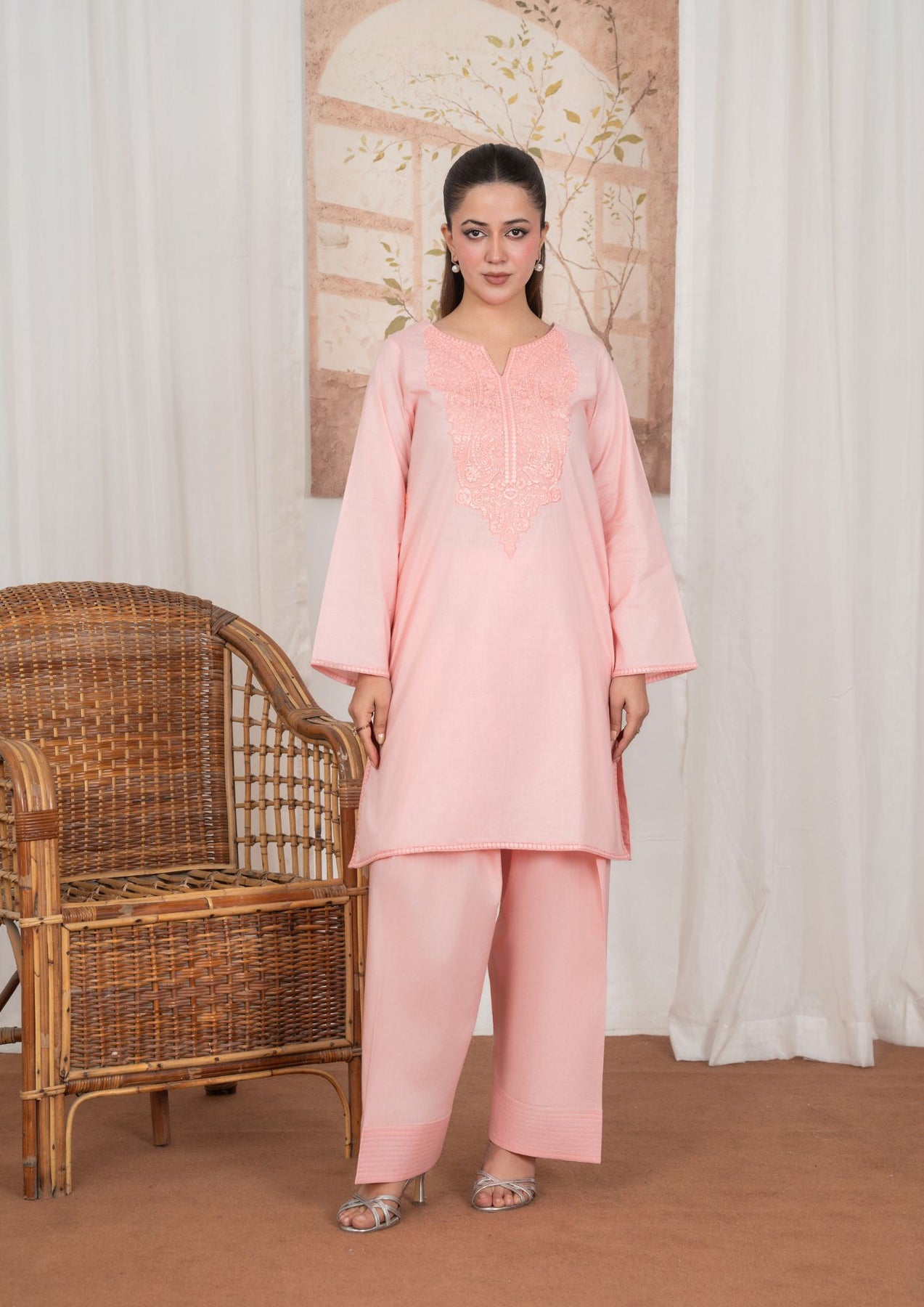 Elevate your winter wardrobe with this 2-piece Embroidered Lawn set, designed for effortless elegance and comfort. The ensemble features a adorned with intricate embroidery on the neckline and front panel, giving it a refined yet timeless appeal. Paired with a classic farshi shalwar, this outfit strikes the perfect balance between tradition and contemporary style.