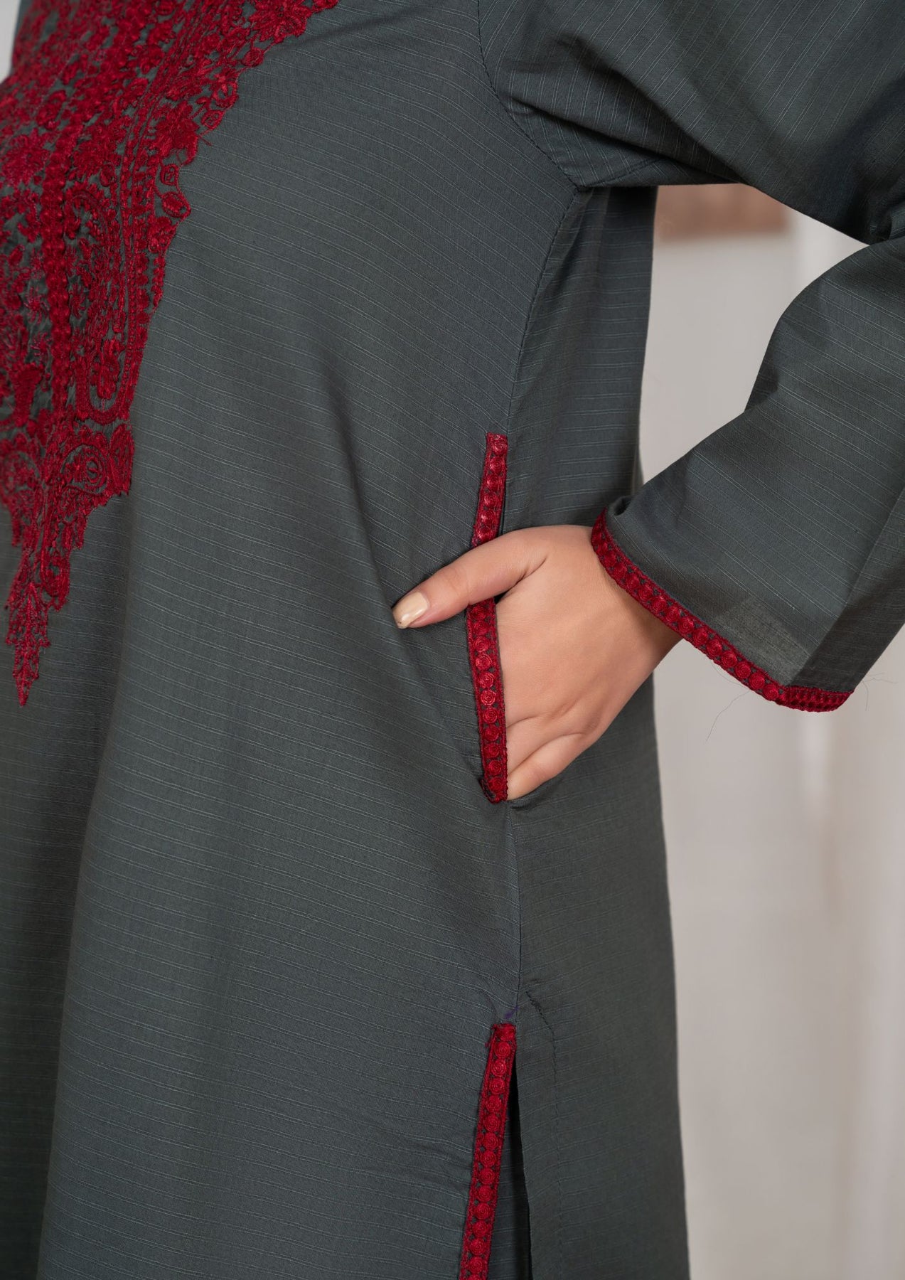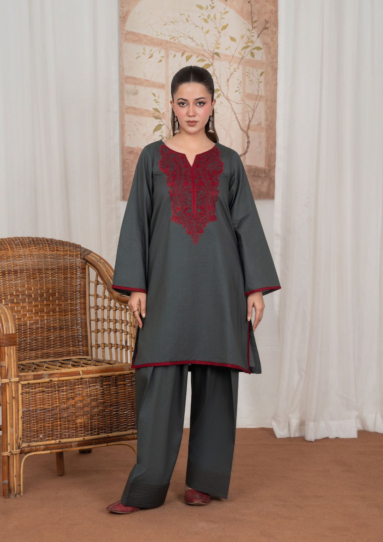 Elevate your winter wardrobe with this 2-piece Embroidered Lawn set, designed for effortless elegance and comfort. The ensemble features a adorned with intricate embroidery on the neckline and front panel, giving it a refined yet timeless appeal. Paired with a classic farshi shalwar, this outfit strikes the perfect balance between tradition and contemporary style.