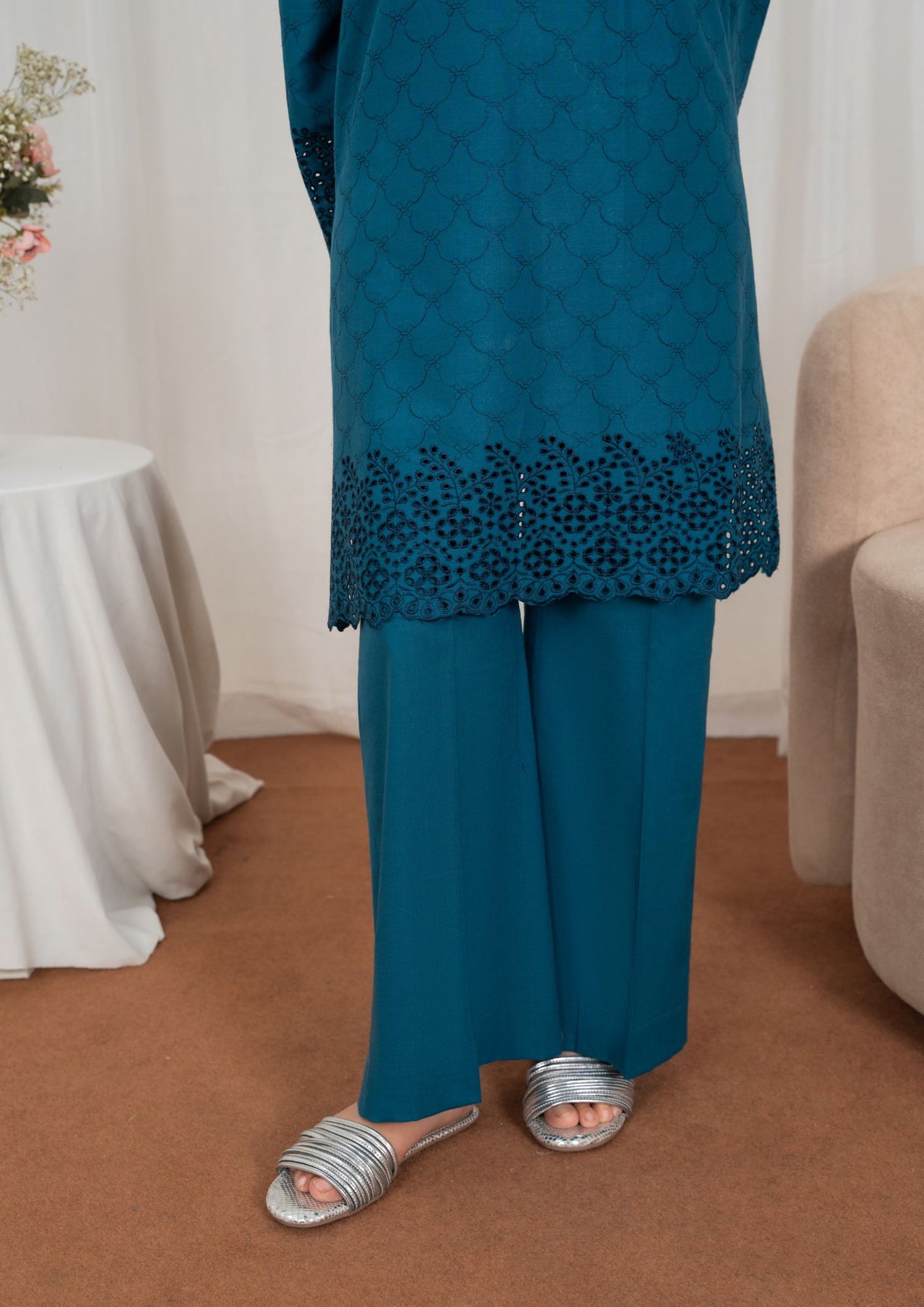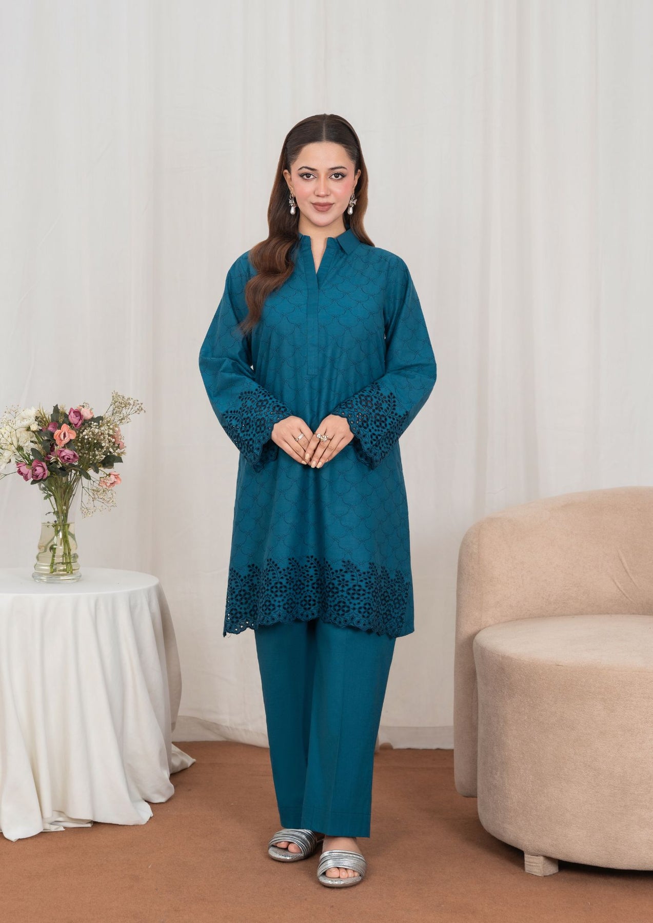 2pc Schiffli Embroidered Cambric Teal Set JASHAN-J26-0045