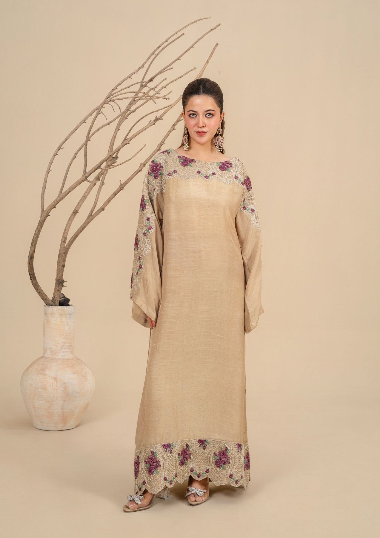2Pc Silk Viscose Kaftan Beige JASHAN-J26-0024