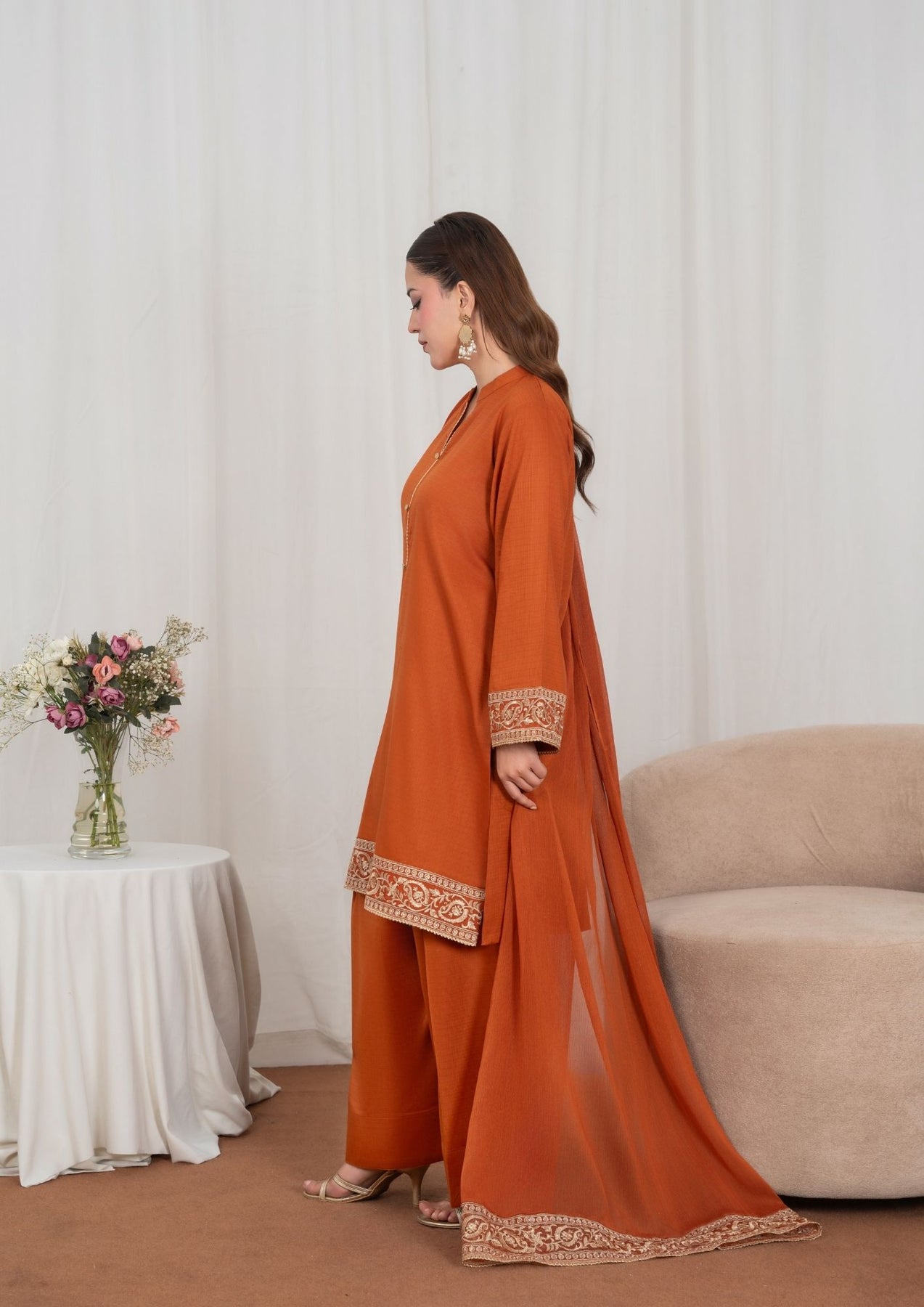3Pc Tilla Embroidered Textured Lawn with Farshi Shalwar with Embroidered Border Chiffon Dupatta JASHAN-J26-0029