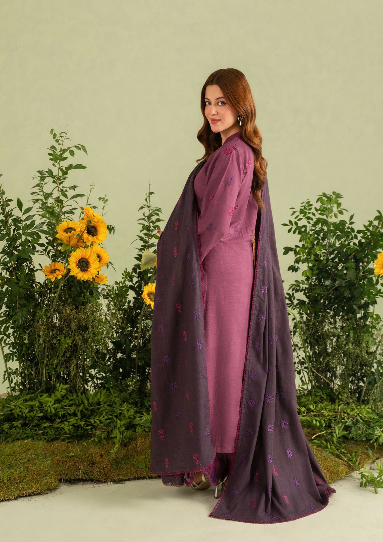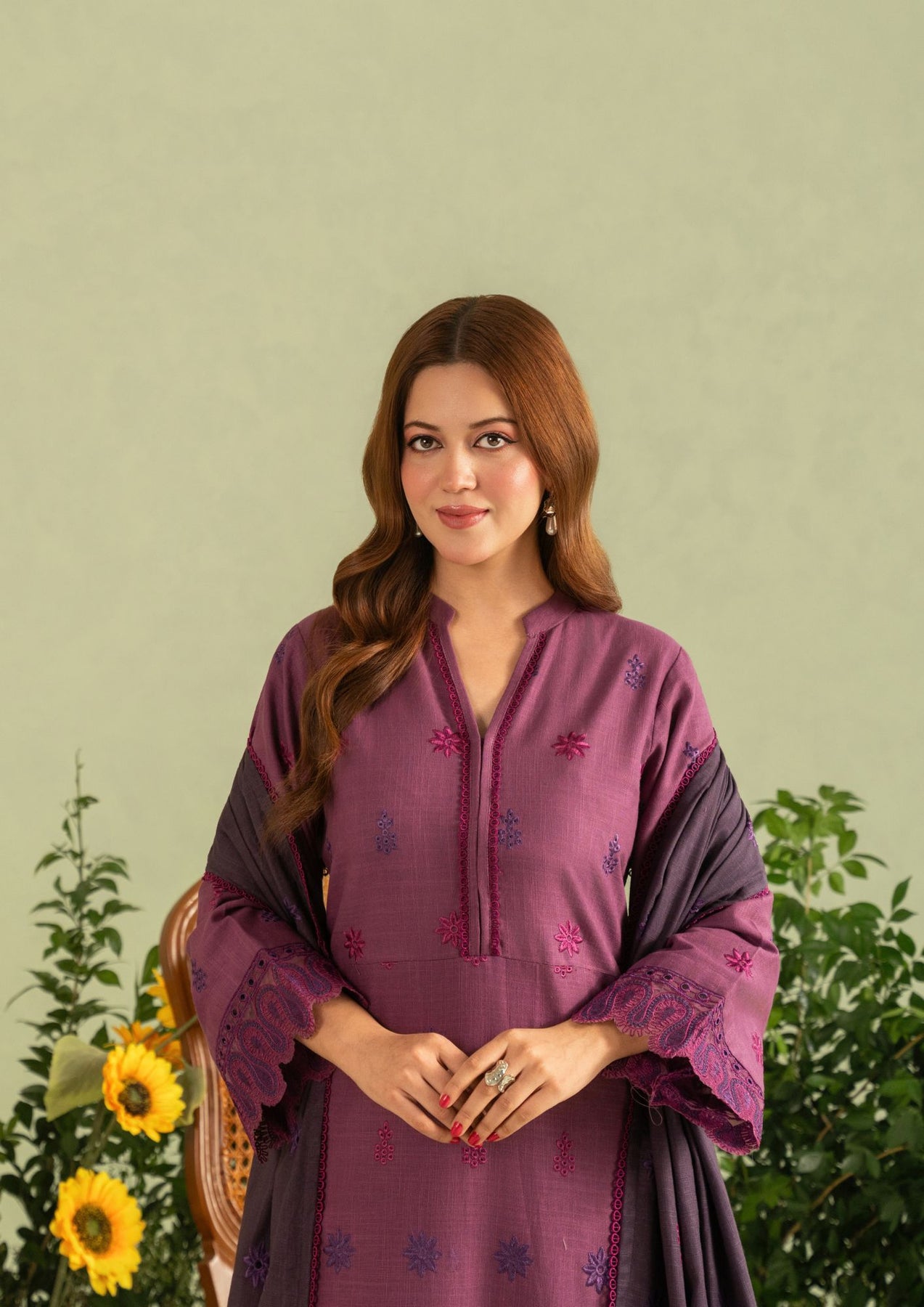 Step into winter with unmatched charm in this exquisitely designed 3-piece embroidered Khaddar suit, created in a stunning blend of plum and deep wine tones. Crafted for women who appreciate timeless artistry, this outfit pairs warmth, elegance, and premium craftsmanship in the most effortless way.