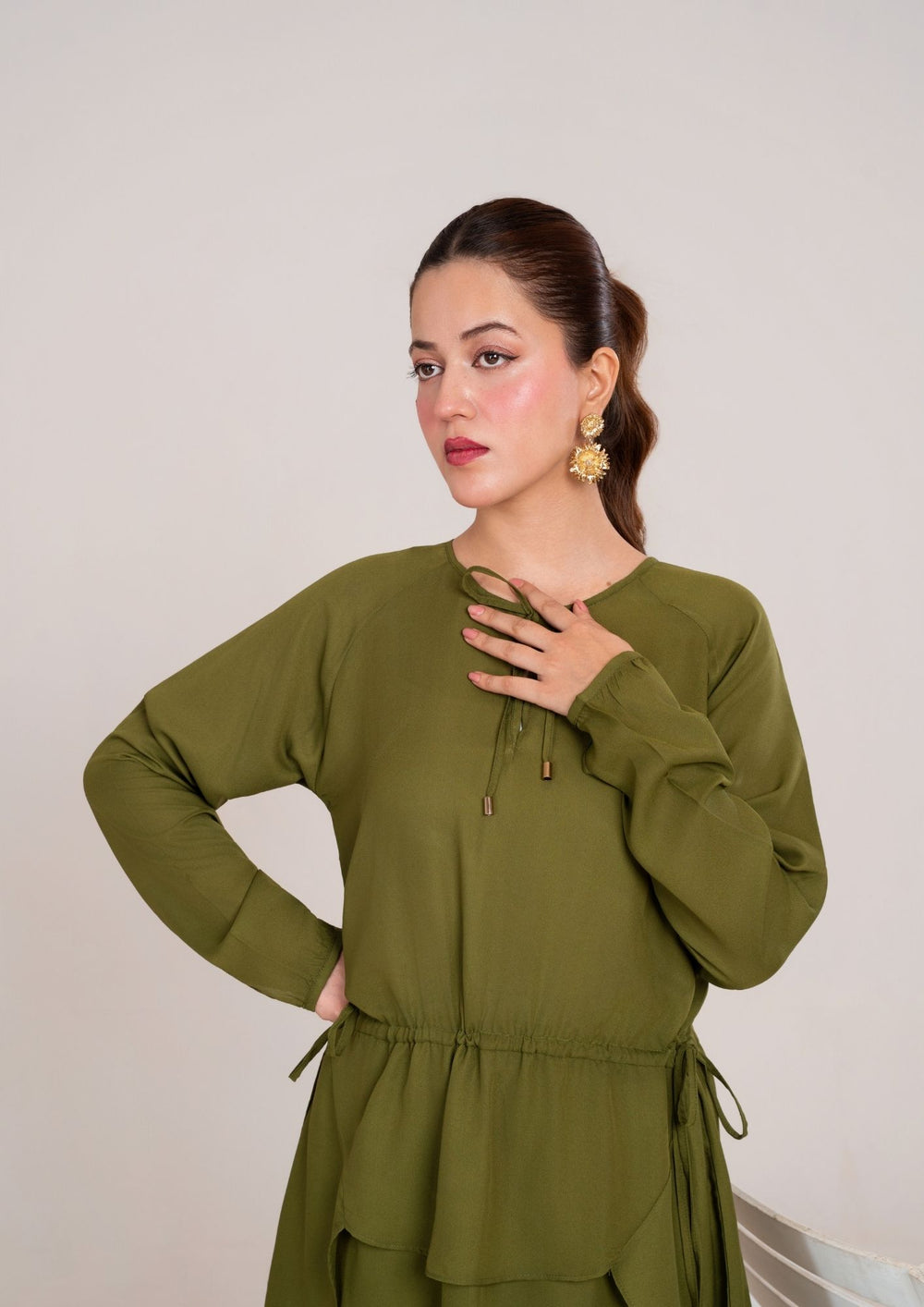 Elevate your everyday style with this effortlessly chic Olive Green Georgette Co-Ord Set, crafted to give you the perfect blend of comfort, flow and modern elegance. Designed in soft, breathable Georgette fabric, this look offers a graceful fall and lightweight drape that flatters every silhouette.