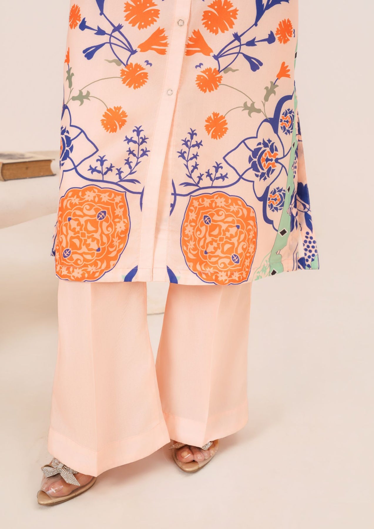 Experience elegance with this Arabic Silk 2-piece outfit, featuring a beautifully printed shirt adorned with vibrant floral and ethnic motifs. Perfect for semi-formal gatherings and casual evenings, the breathable Arabic Silk fabric ensures comfort while keeping your style effortlessly graceful.