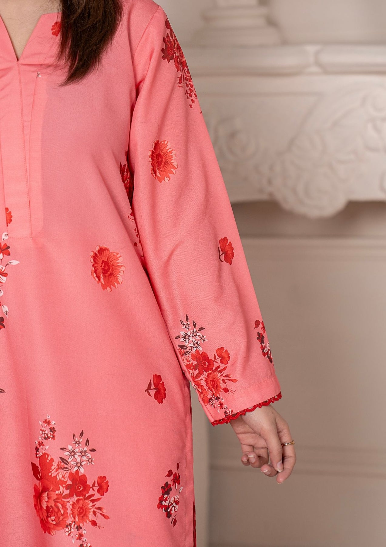 • Bottom: The outfit is paired with comfortable straight-cut trousers, also made from digital printed Arabic Silk lawn, showcasing the same exuberant floral print for a perfectly coordinated and lively look.